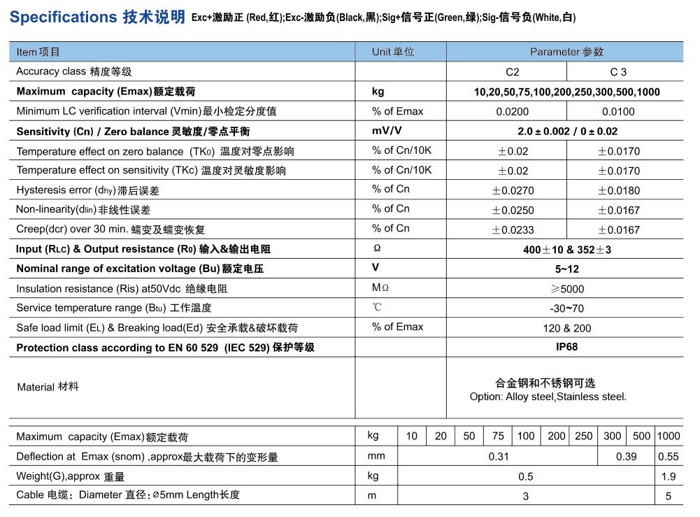 該稱重傳感器結構緊湊,安裝簡便,有過載保護與支撐桿,采取擺支撐有自復位功能,合金鋼和不銹鋼材質可選。杰曼科技稱重傳感器堅固耐用,設計精良的稱重傳感器,精度最高可達C3等級,防護等級達IP68,能夠保證高度精確可靠的數據,用于需要精確測量的多種行業中,避免產品浪費,節約成本。功能用途:廣泛適用于皮帶秤、料斗秤等稱重設備。