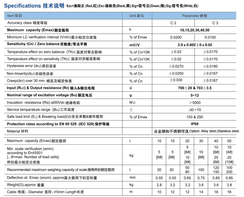 該稱重傳感器結構緊湊,安裝簡便,激光焊接IP68,自復位功能,額定材質范圍:10t~50t;經過角差預調整適合并聯使用(按EN 45 501);合金鋼和不銹鋼材質可選。杰曼科技稱重傳感器堅固耐用,設計精良的稱重傳感器,精度最高可達C3等級,能夠保證高度精確可靠的數據,用于需要精確測量的多種行業中,避免產品浪費,節約成本。功能用途:廣泛適用于臥罐秤、筒倉秤等稱重設備。